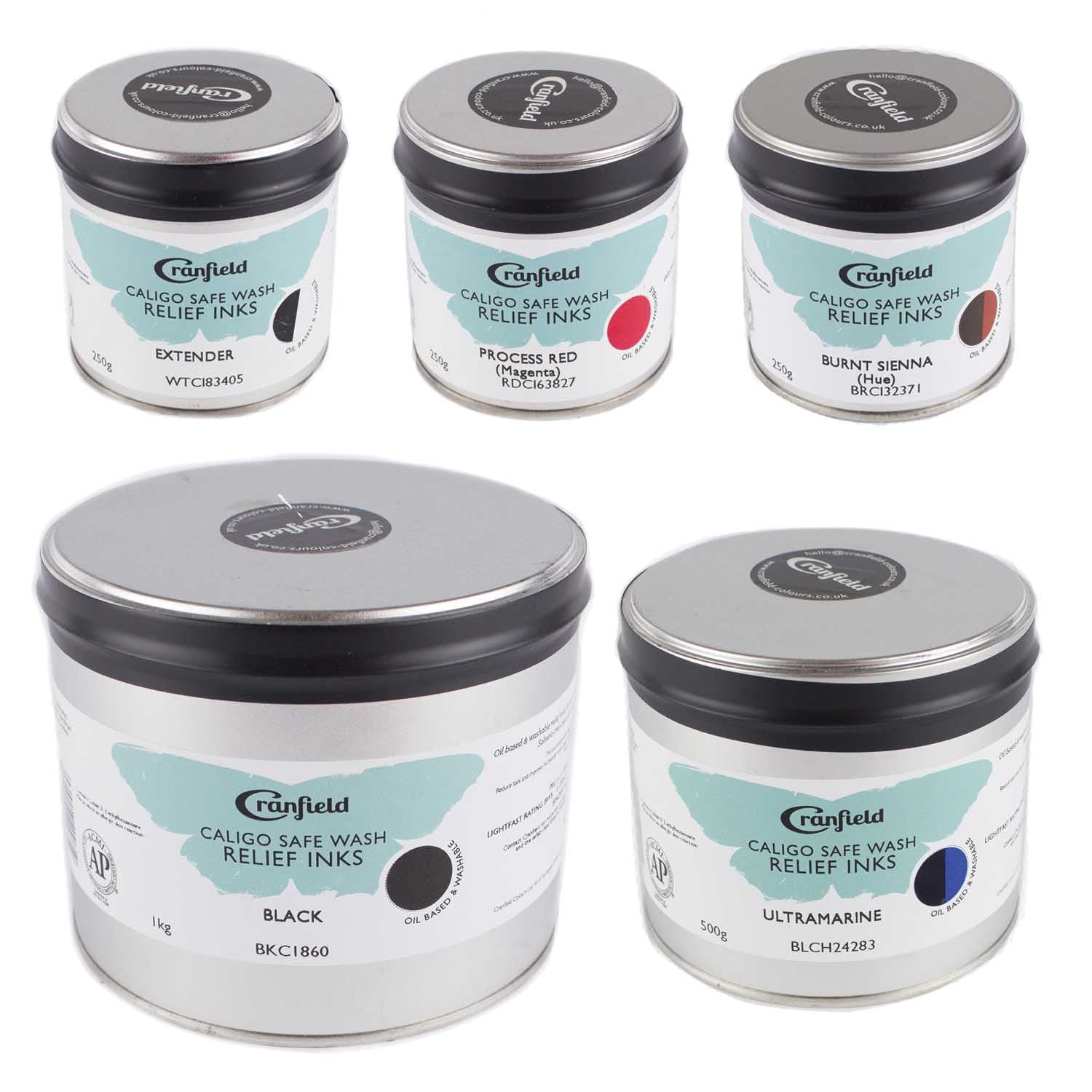- Linseed oil based relief printing inks, that can be washed safely with soap and water
